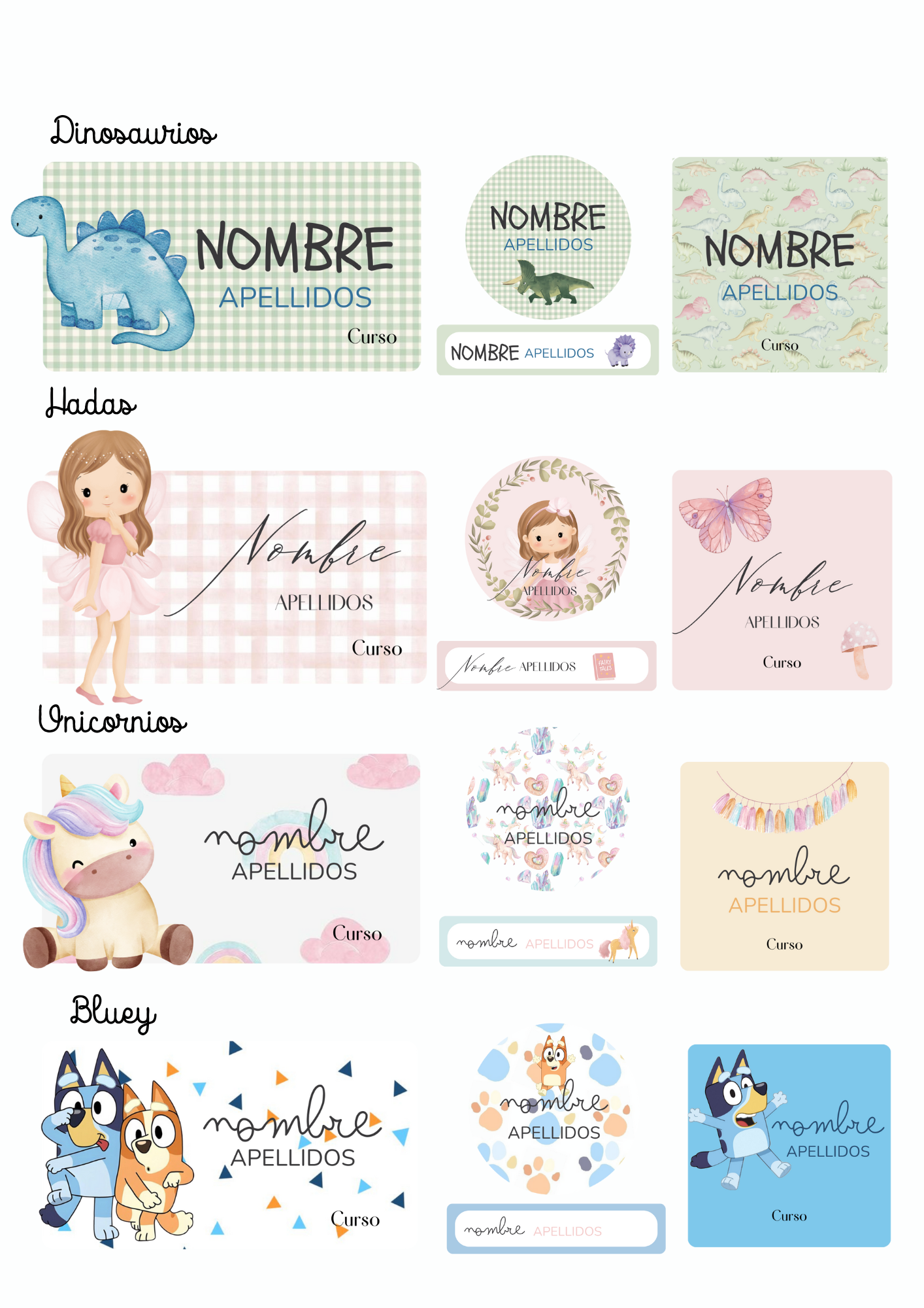 - El nombre que elijas irá impreso en todas las etiquetas.